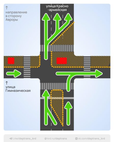 Также изменится организация дорожного движения на двух перекрестках: на пересечении Гимназической и Красной будет сужена Красная с четырех до двух полос, а на пересечении Гимназической и Красноармейской сужена будет Красноармейская с трех до двух полос.